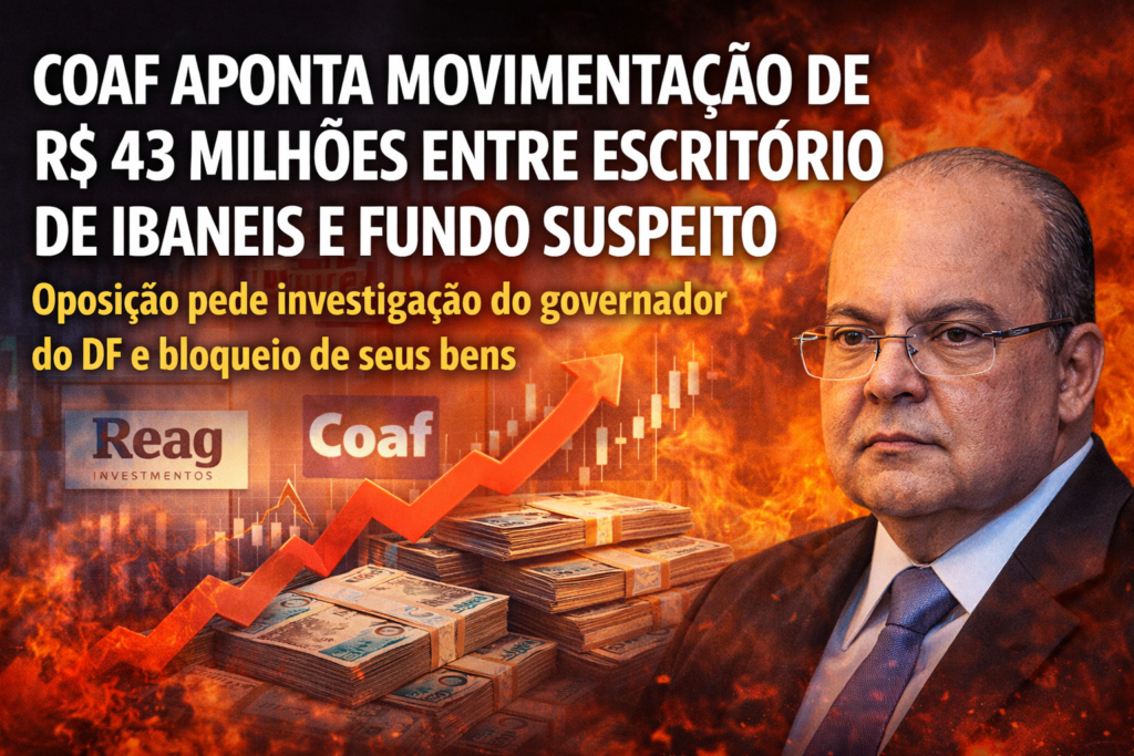 Duas operações financeiras que somam quase R$ 43 milhões entre o escritório particular de advocacia do governador do Distrito Federal, Ibaneis Rocha (MDB), e um fundo ligado à Reag Investimentos colocaram o nome do chefe do Executivo local no centro de um novo foco de apuração. As informações constam em um Relatório de Inteligência Financeira (RIF) do Conselho de Controle de Atividades Financeiras (Coaf), e levaram a oposição na Câmara Legislativa do DF a pedir ao Ministério Público a investigação do governador por improbidade administrativa, além do bloqueio de bens.