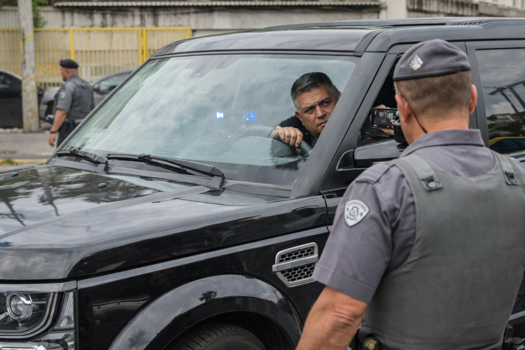 O senador Alexandre Luiz Giordano (Podemos-SP) se envolveu em uma ocorrência policial na manhã de segunda-feira (23), na zona norte de São Paulo, após ser abordado por uma equipe da Polícia Militar enquanto conduzia um veículo com irregularidades. De acordo com o relato policial, a Land Rover preta circulava sem placas visíveis e com “giroflex” acionado quando chamou a atenção dos agentes durante patrulhamento na Alameda Afonso Schmidt.