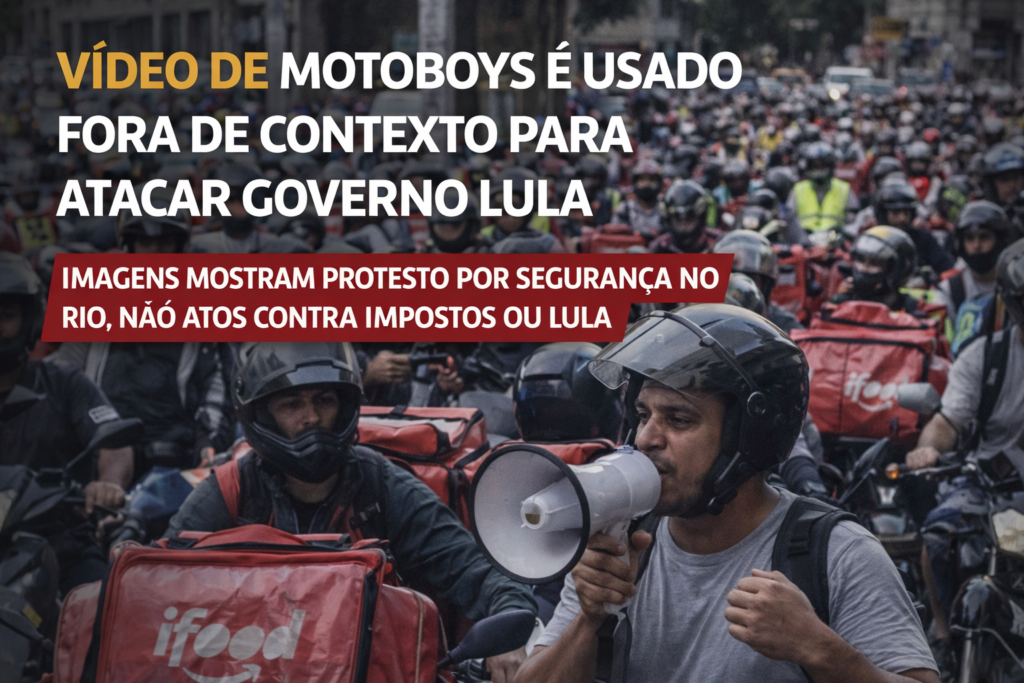 O conteúdo original foi publicado nas redes sociais por Thiago Santana, que se apresenta como liderança dos motoboys no Rio. Nos posts falsos, porém, o vídeo foi editado e teve parte da gravação cortada. No trecho suprimido, o organizador do ato afirma que o grupo seguiria em direção ao Palácio Guanabara, sede do governo estadual do Rio de Janeiro, deixando claro que a mobilização era voltada à cobrança por mais segurança pública.